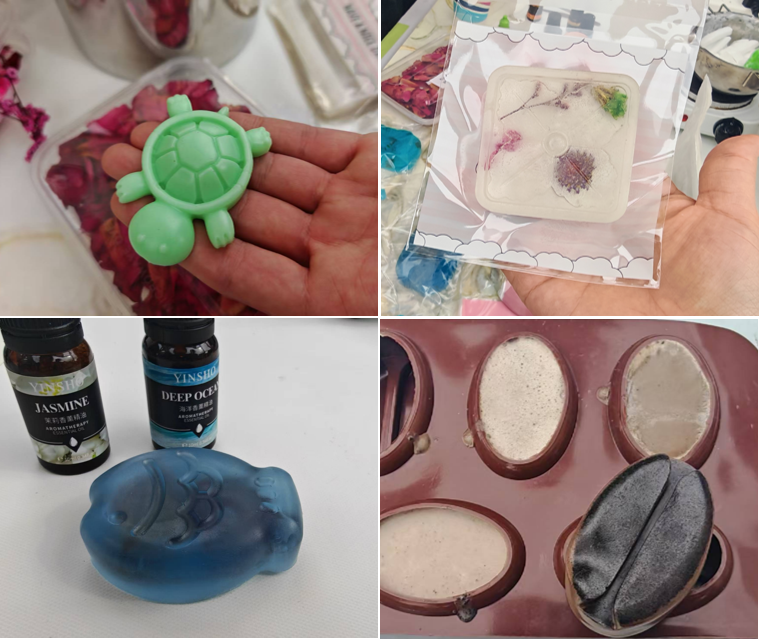 在实践环节,参与者们化身“生活化学家”,在活动小组成员的指导下,亲手操作。大家精心挑选心仪的色彩和迷人的香氛,将个性化的创意融入其中。一时间,活动现场充满了专注的神情和欢声笑语,调配、搅拌、入模、脱模的过程,不仅是创造独一无二手工皂的步骤,更是一次对分子结合奥秘的亲身感悟。最终,一块块色彩斑斓、香气馥郁、温和滋润的环保手工皂在大家手中诞生。每一块手工皂都承载着制作者的巧思与科学的魅力,成为独一无二的纪念品。