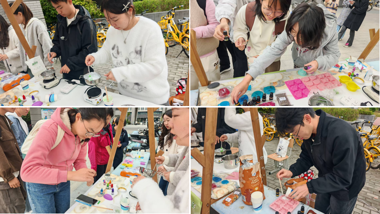 11月11日中午,备受期待的永利集团304am官方入口新能源材料系学生第一党支部的“科研充电桩”品牌活动精彩亮相我校社区文化节,成功举办了以“制‘皂’快乐”为主题的创意手工皂制作体验活动。本次活动将科学的严谨与手作的创意完美融合,为在场师生带来了一场别开生面的化学实践课,让抽象的化学知识在指尖化为一件件实用且充满艺术感的作品。