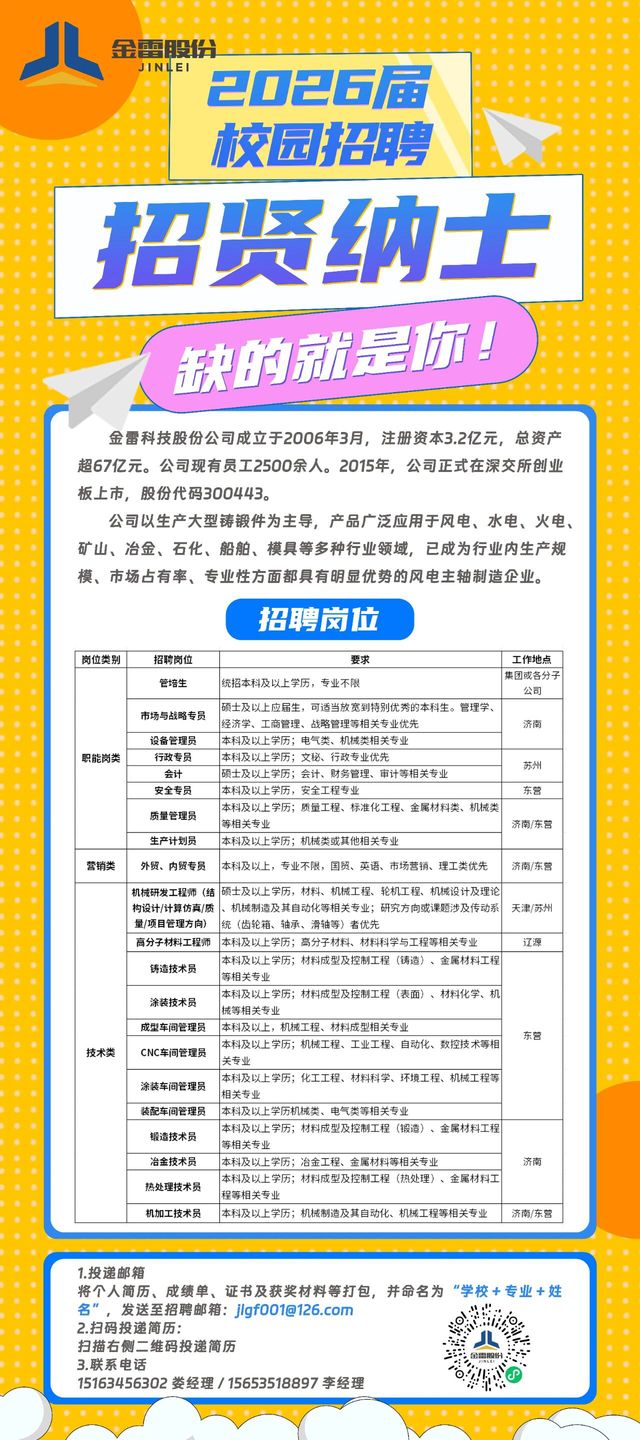 院2026届就业信息【59】——(全国)金雷科技股份公司